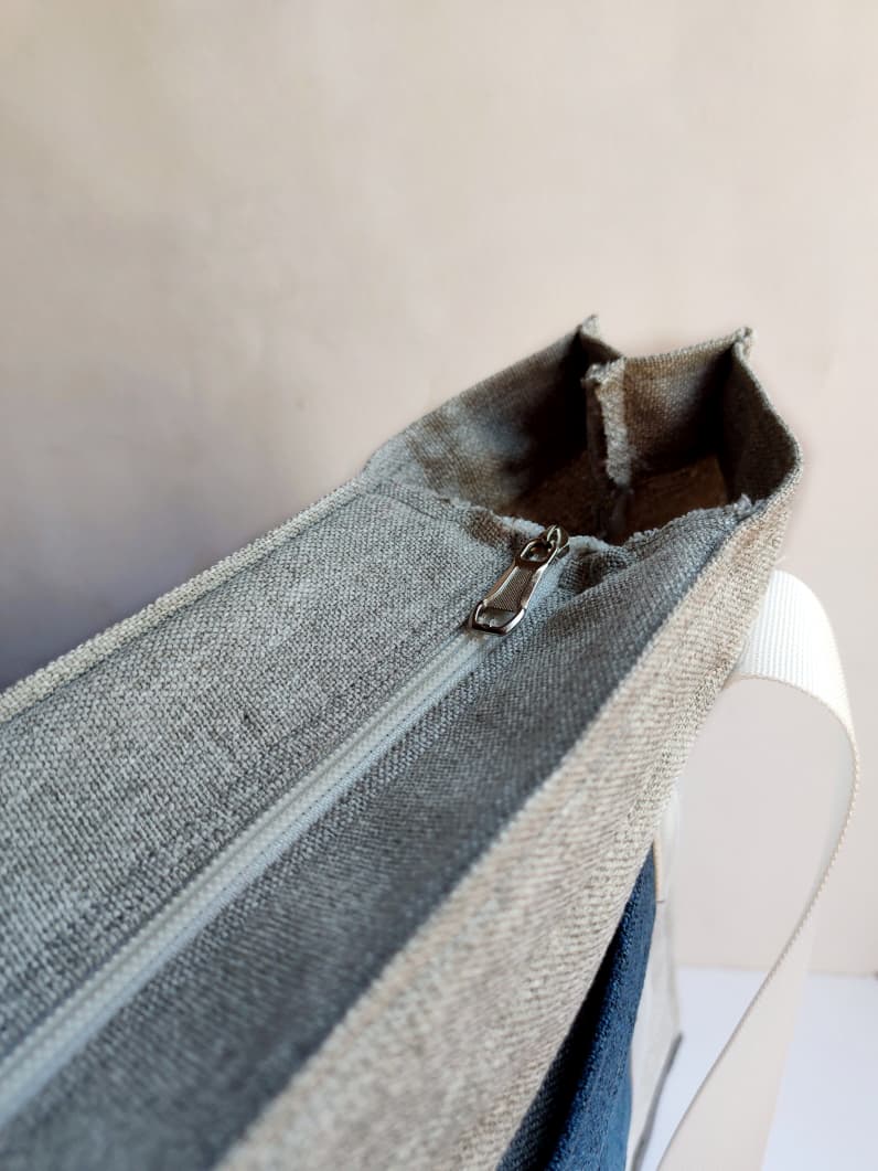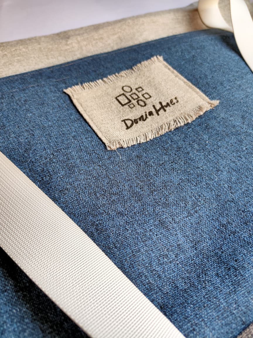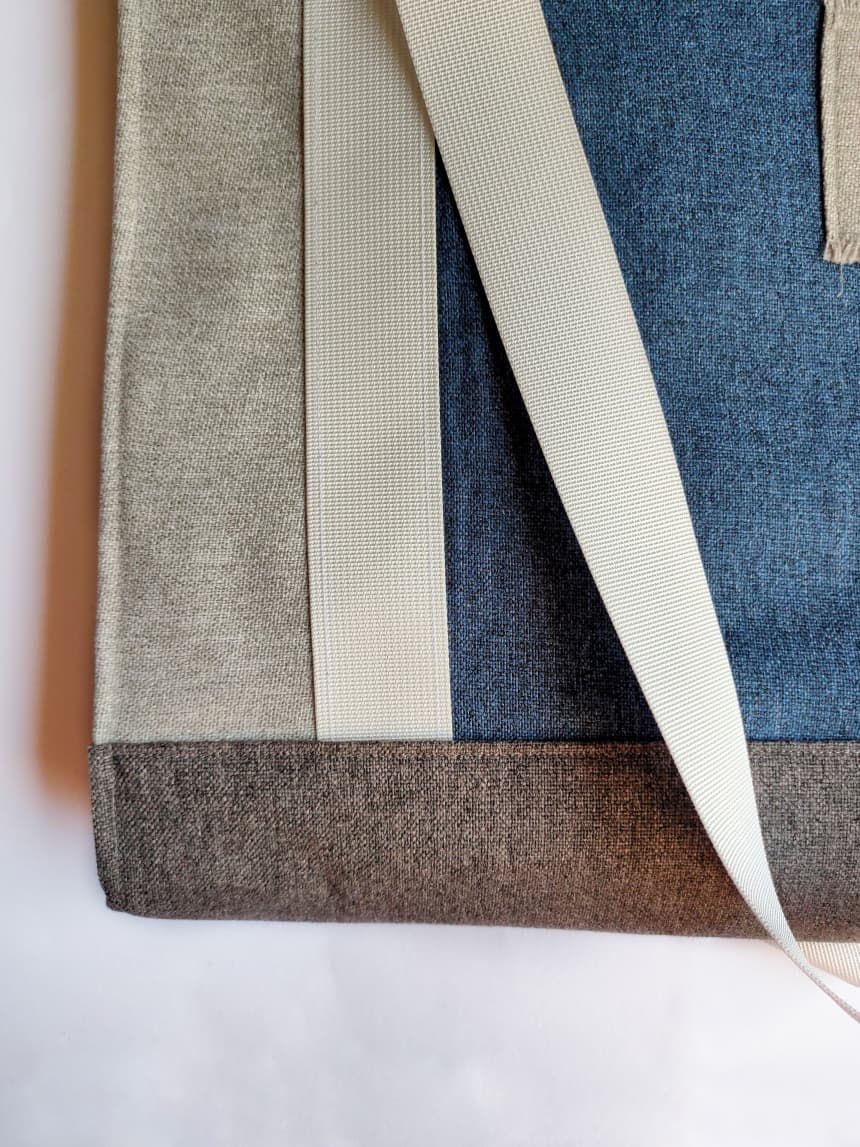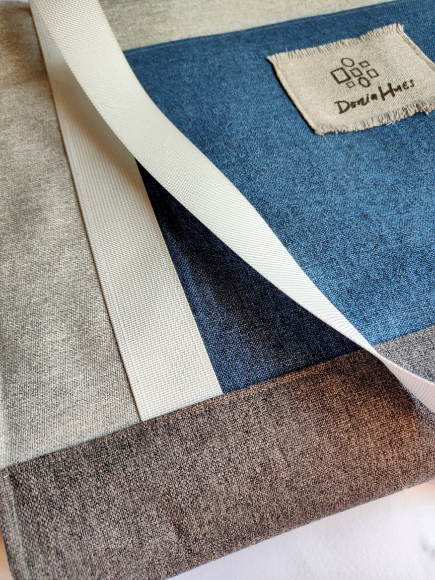 Handcrafted from thick linen fabric in a soft mix of light grey, dark grey, and deep navy blue, it reflects a balanced, modern aesthetic that suits artists and minimalists alike.