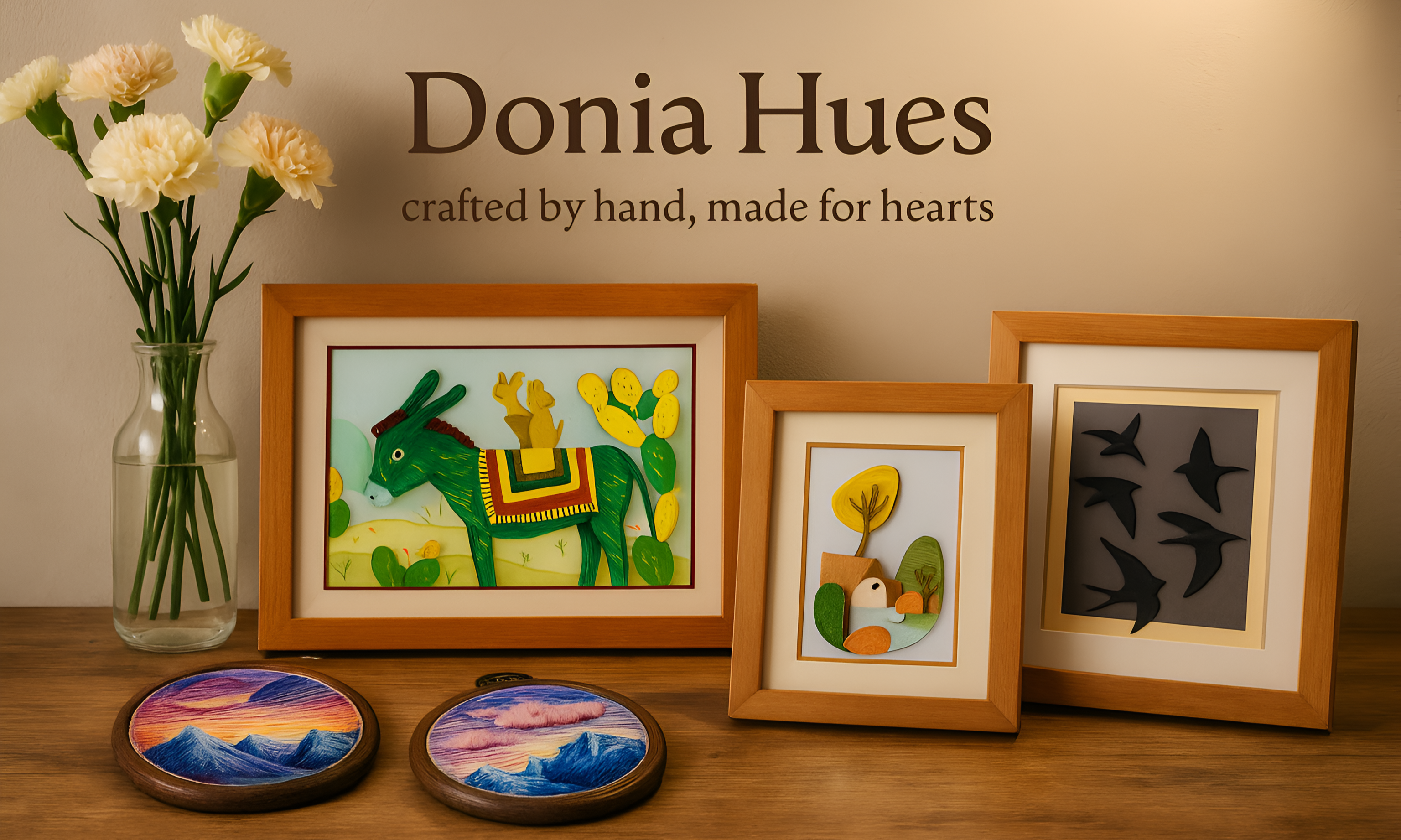 View All ArtworksA curated collection of handmade pieces — featuring Donia Hues originals and works by talented guest artists. Each piece is unique, crafted with care and creativity.